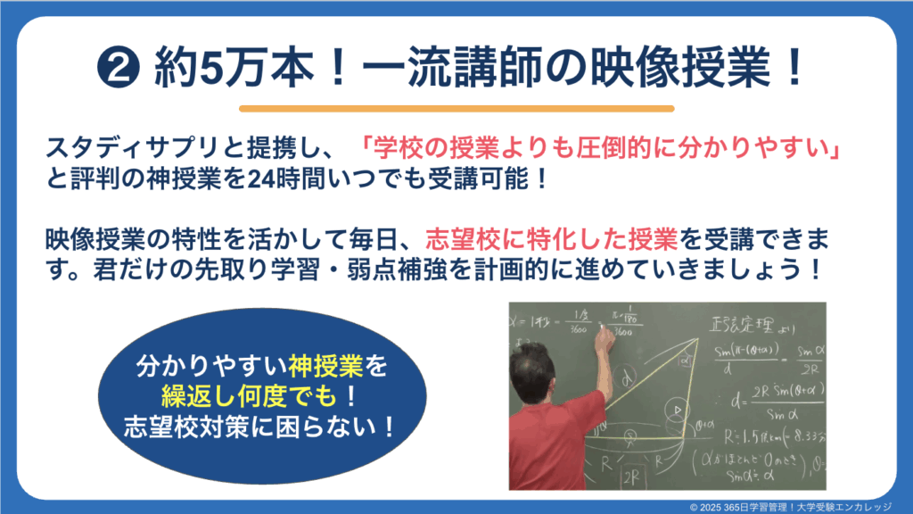映像授業・参考書のハイブリッドで最適な学習を提供します!