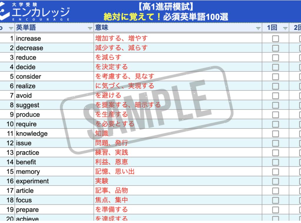 ※大学受験エンカレッジでは、高校1年のうちに英単語帳を1冊完璧にすることを目標としています!