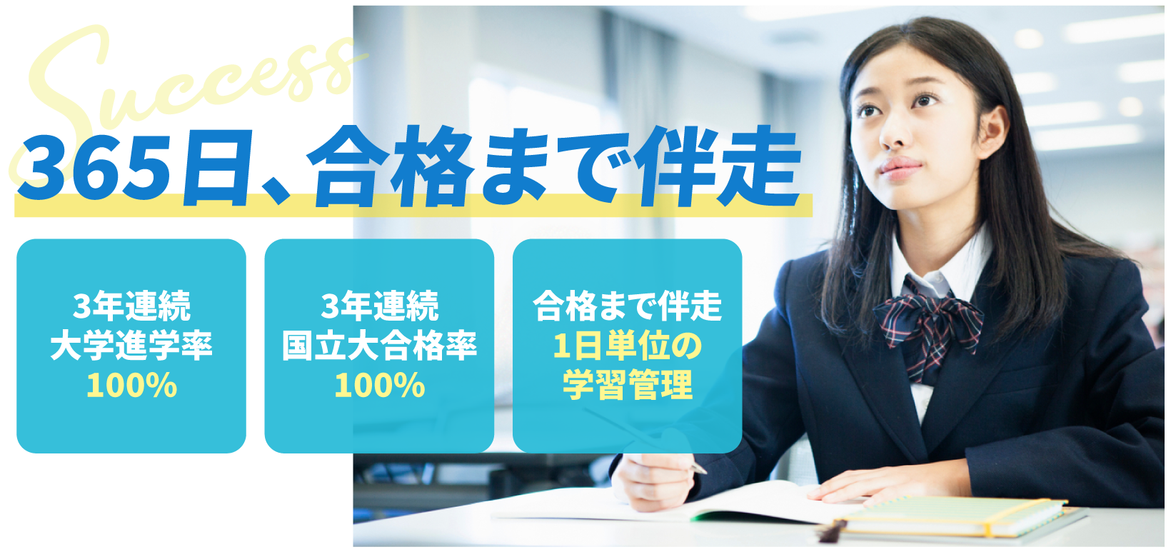 「映像授業 × プロの365日学習管理 × 個別指導。」